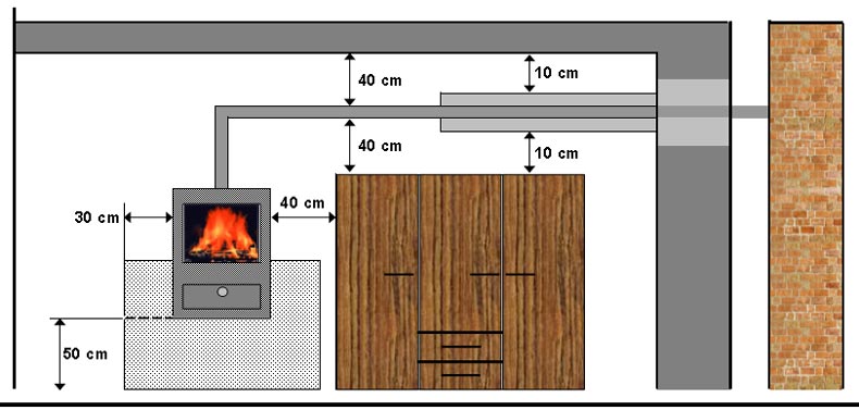 | Infos >> Abstand von Rauchrohren zu brennbaren Baustoffen |
